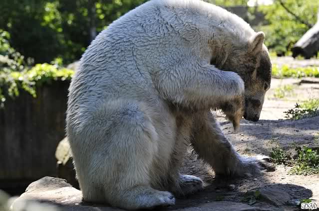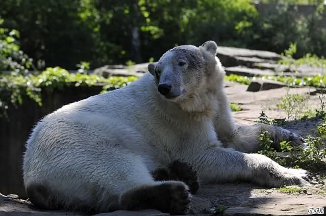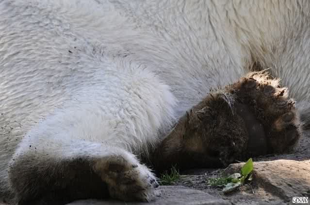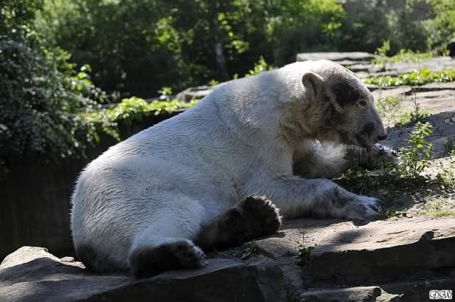 Knut ist jetzt schon sehr bewegungsfaul. Jedem anderen Tier, was so lange Krallen hat (weil es so wenig läuft, bzw. in dem Gehege laufen kann) wird eine Maniküre verordnet. Pfotenpflege ist sehr wichtig für alle Tiere, sonst klappt es mit dem Laufen irgendwann gar nicht mehr. Dann die Hitze im Sommer in den Gehegen ohne irgendwelche Möglichkeiten, sich zurück zu ziehen. Das ist Tierquälerei!!! Da müßte sich PETA einschalten.