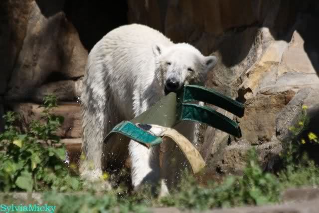 Zunächst bin ich sehr traurig, wenn ich sehe, wie gut es Eisbären in anderen Zoos geht, die viel Spielzeug bekommen, Eisbomben, Tomaten im Rohr, mit denen (wie dazumal in Hellabrunn) gearbeitet wird - und vor allem, die schöne Gehege haben oder bekommen. Knut kann ich wirklich nur bedauern, wenn ich sehe: