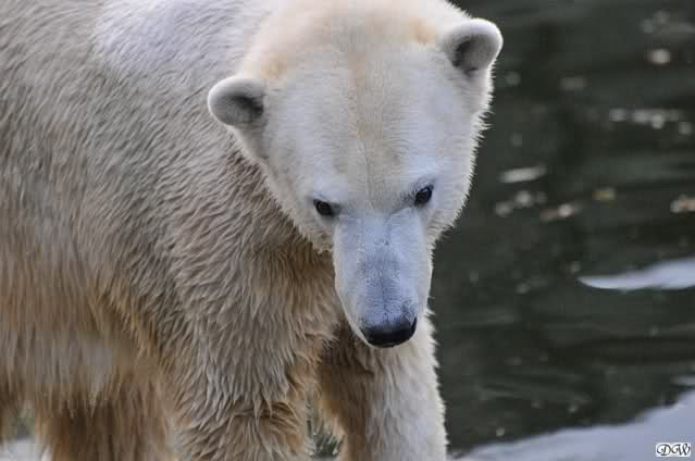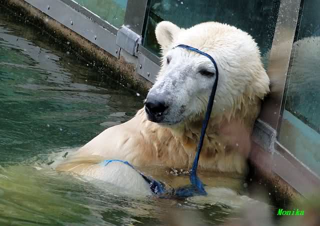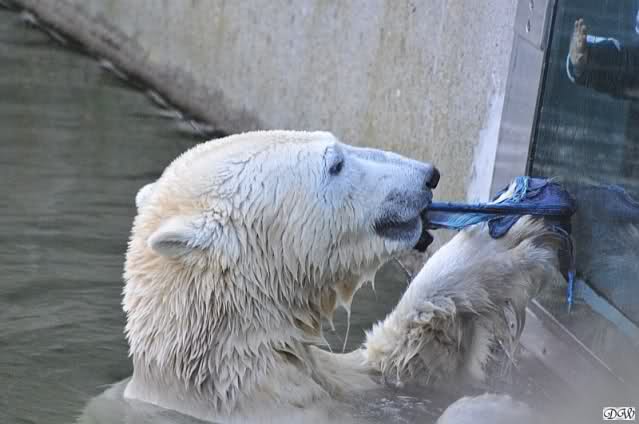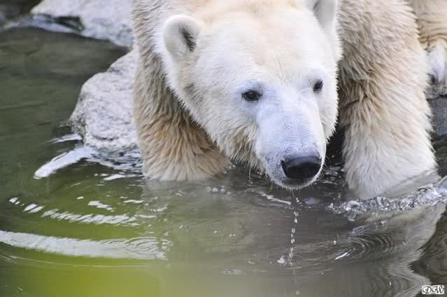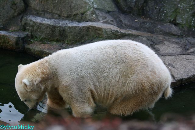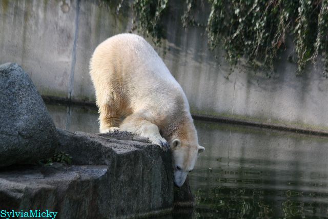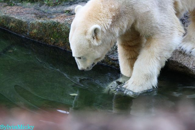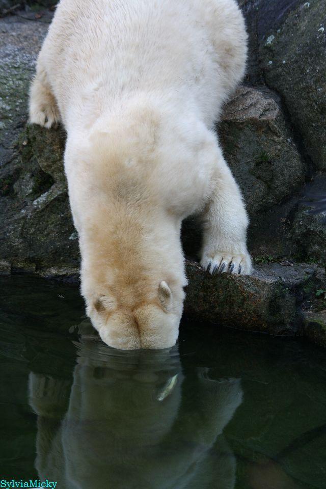 Ich denke manchmal, daß Knut so trinken will. Er kommt aber nicht an das Wasser ran