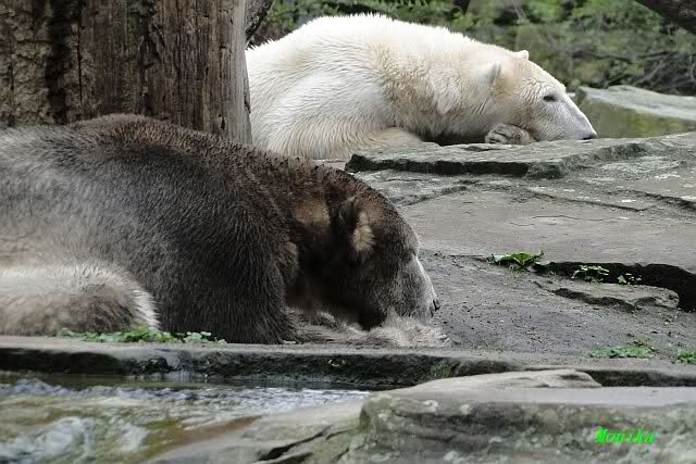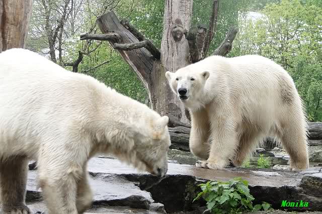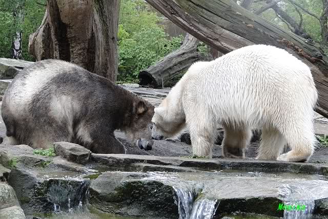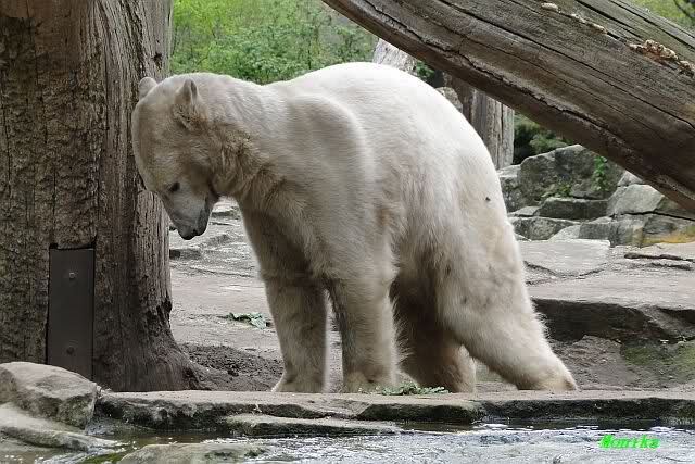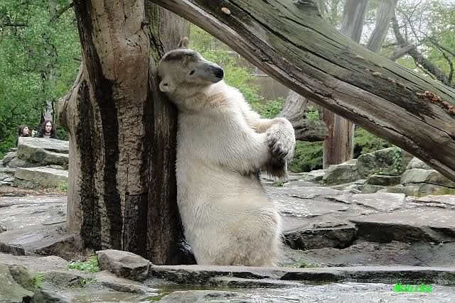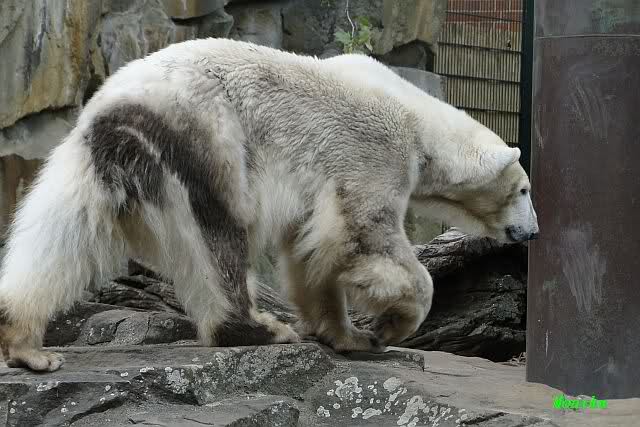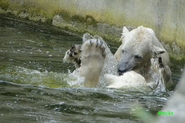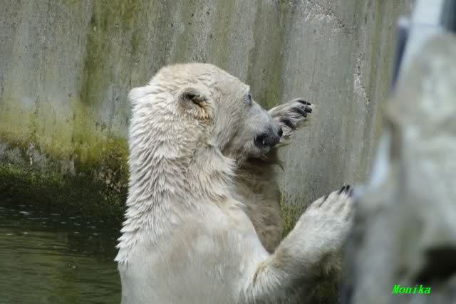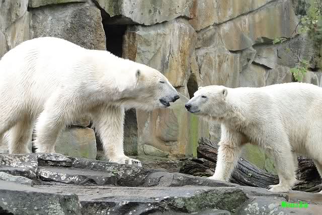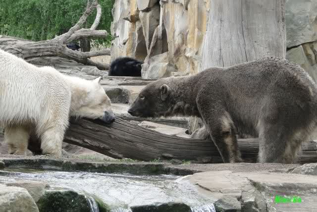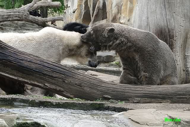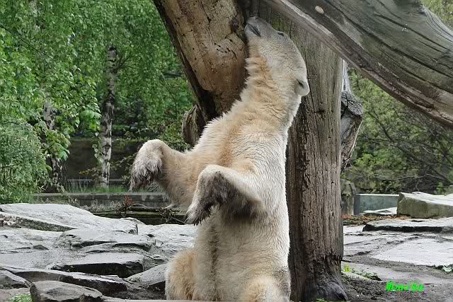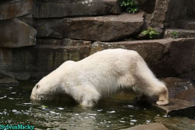Auch ich war heute Nachmittag im Zoo und konnte wieder die Verwandlung Knuts von einem Eisbären in einen Schwarzbären beobachten. Davon wird es auch ein Video geben, aber ob es heute noch klappt ? Zuerst wird es ein Video von Knuts Mutter Tosca im *Berliner Zoo* Thread geben. Die Eisbärweibchen Tosca und Nancy spielten eine lange Zeit zusammen im Wasser.