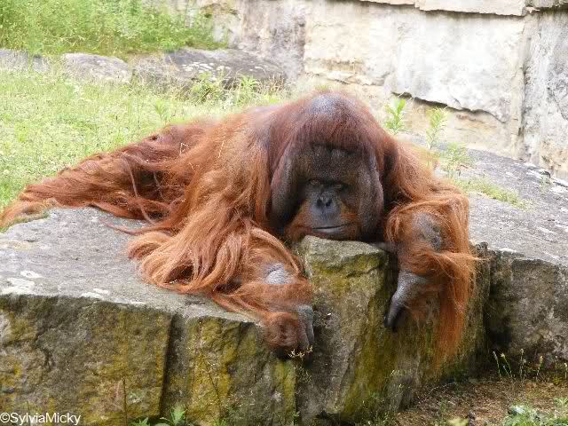 Das ist Kevin im July 2008 auf seiner Außenanlage. Er kann dort nicht mehr leben, da die drei Außenanlagen zusammen gelegt werden, um eine 8-10 köpfige Gorillagruppe dort unterzubringen. Seitdem lebt Kevin im Käfig auf dem Dach. Wie andere Affenarten auch, die in den unteren Käfige keinen Platz mehr haben! Wozu brauchen wir eine 8-10 köpfige Gorillagruppe? Für unsinnige Vermehrung? Hätte man Kevin nicht seinen Lebensabend da gönnen können, wo er gelebt hat. Er hat es doch schon schwer genug gehabt.