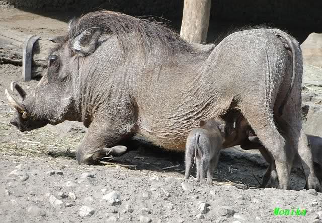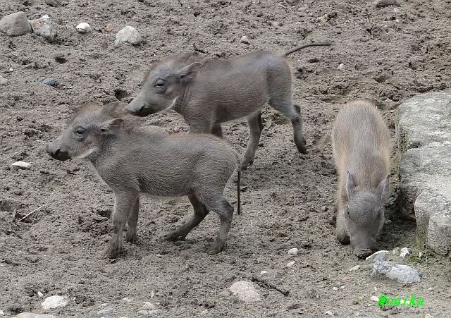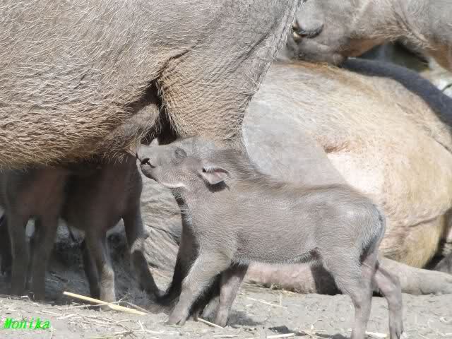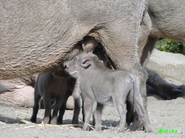 Die drei kleine Warzenschweine beim Frühstück an der Milchbar