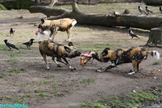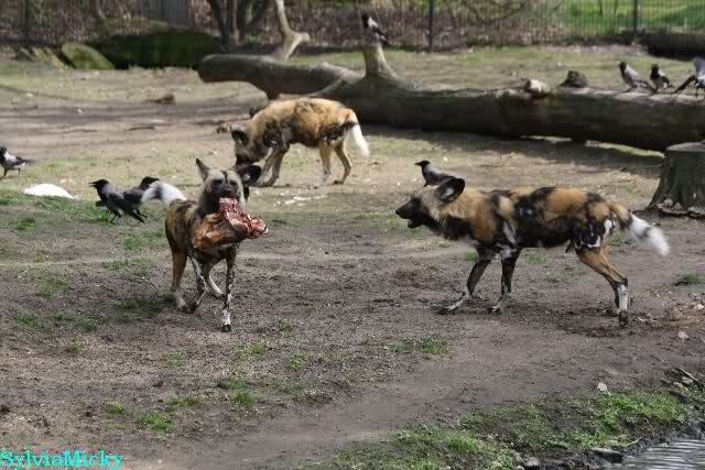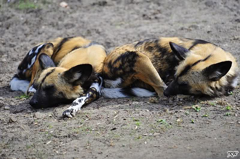 Siesta bei den Wildhunden. Ein Tier humpelt sei einigen Tagen sehr stark