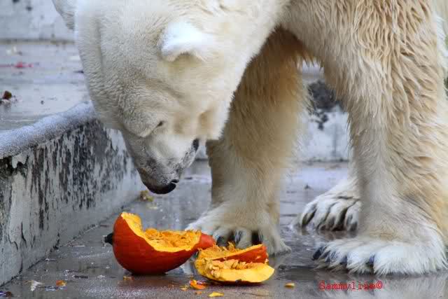 Wenn man aus dem Urlaub kommt bringt man ja immer für seine Lieben etwas mit. So haben wir heute bei Herrn Kühl zwei dicke Kürbisse abgegeben. Einen hat er dann auch gleich bekommen und ihn sich gleich schmecken lassen. Hat der geknackt und geschmatz. Es war eine großes Vergnügen ihm dabei zu zu schauen. Etwa eine halbe Stunde später kam Herr Kühn mit einem ganz dicken Rohr und warf dieses ins Wasser. Wurde mit einem Hechtsprung auch gleich "begrüßt".