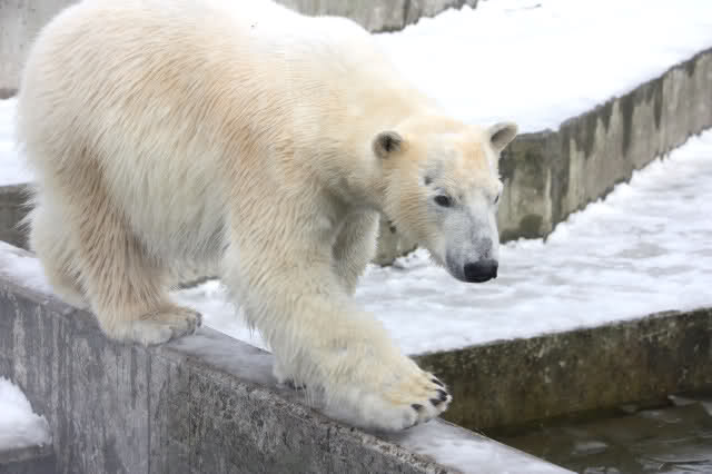 Moskauer Eisbärinnen sind sehr fürsorgliche Mütter. Die Mütter lassen sie nicht eher zum Schwimmbecken, solange sie nicht schwimmen können. Wenn die kleinen neugierige sind und in’s Wasser fallen, ziehen die Mütter die Jungen sofort aus dem Wasser.