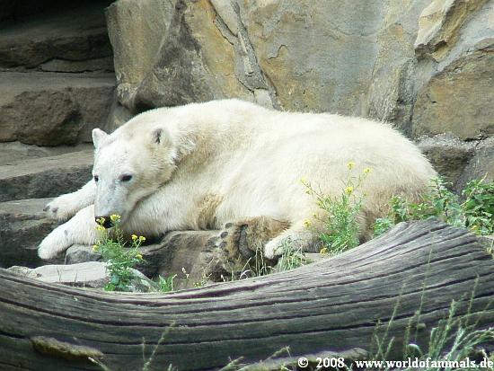 Ich kann jetzt nur Bilder von der Ruhephase am Sonntag Nachmittag zeigen. Auch die sind sehr interessant, denn wer Knut ein bischen mehr beobachtet und anschaut wird feststellen, das Knut langsam aber sicher vom Eisbären Youngster zu einem wunderschönen Eisbärenmann wird. Sein Gesicht, seine Schnauze wird mehr und mehr *eisbärmännlich*. Die folgenden Großaufnahmen zeigen das auch. In gut 5 1/2 Monaten wird er schließlich 2 Jahre alt....