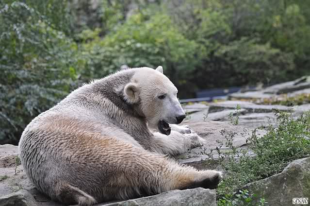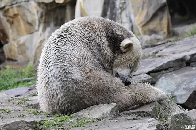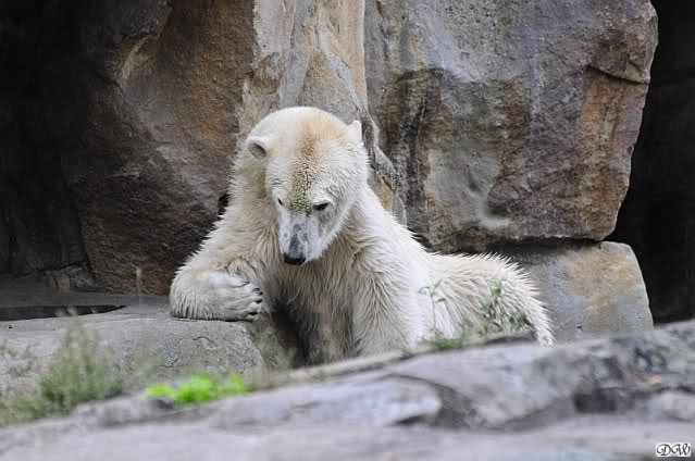 Thanks for your entries, your greetings. Take a look to the pictures from today. Giovanna is sitting very relaxed on Knuts enclosure. I´m sure Knut and Giovanna were playing together within the next two weeks Step by step, day by day.