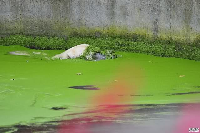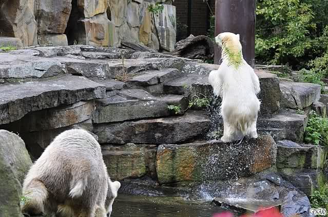 Als Knut in seinem kleinen Pool stand, kam Gianna aus dem Wasser und sie hob die Tatze in seine Richtung. Er erwiderte diese Bewegung. Es war kein Kampf, sondern eher eine kurze Kontaktaufnahme.