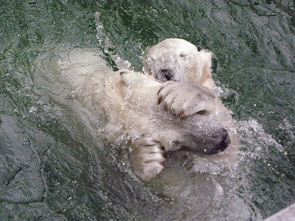 Auch letzten Samstag war ich bei den Bärchen. Es gibt aber nicht allzuviel zu berichten, zumal ich ziemlich abgelenkt war, weil ich dort zwei andere Bärchenfreundinnen getroffen habe Leider war bei Flocke wieder recht viel Gelaufe und Genuckel angesagt, während Rasputin meist seine übliche Strecke am Nachbargehege geschwommen ist. Flocke hat aber dann auch mal wieder ihre große Wasseraktion an der Scheibe gebracht, wenn irgendwas ihre Aufmerksamkeit erregt, lässt sie sich schon aus ihrem Trott reißen. Ich schaue, dass ich am Wochenende noch ein paar Bilder einstelle. Allerdings will ich morgen schon wieder in den Tiergarten Dann muss ich wahrscheinlich erstmal mindestens vier Wochen pausieren, das wird schwer. Aber ich bin ja froh, dass ich es wider Erwarten die letzten Wochen immer geschafft habe.