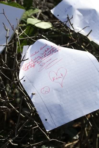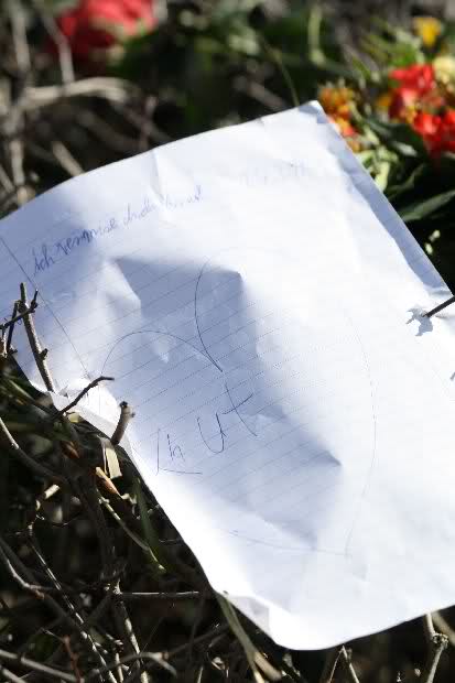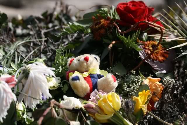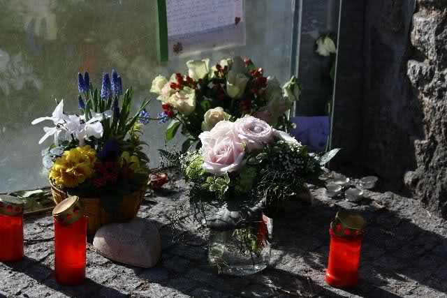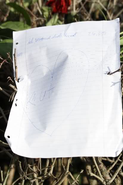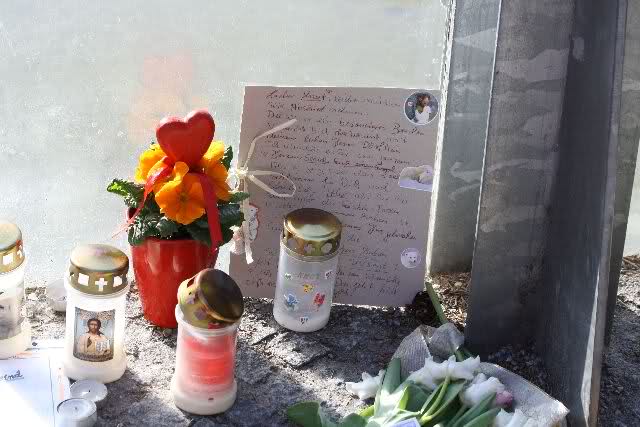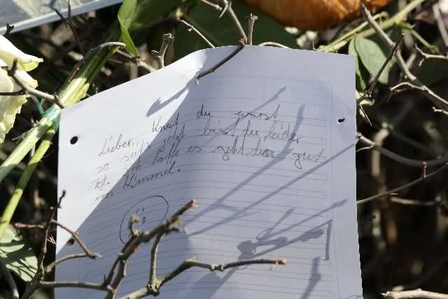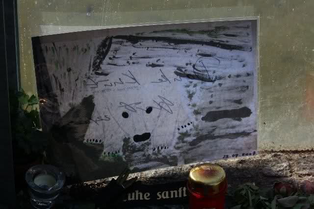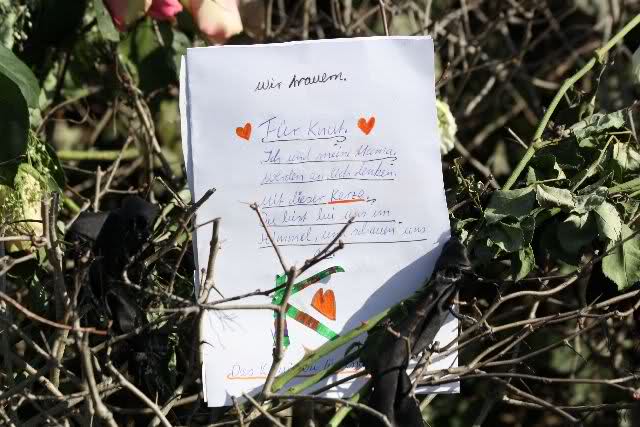 Auch heute wurden wieder viele Blumen, Briefe und Fotos an der Anlage abgelegt. Und viele Zeichnungen von Kindern.