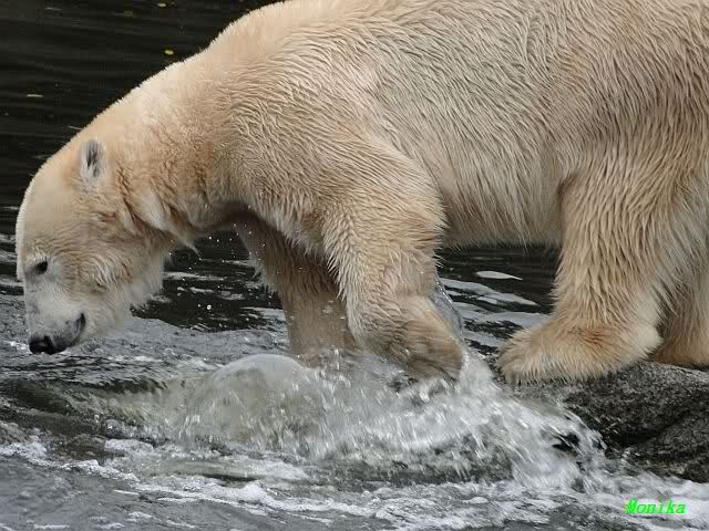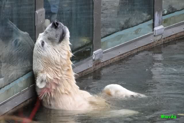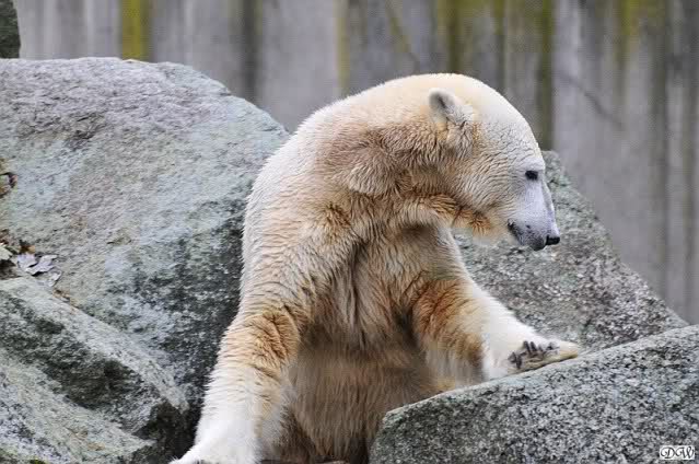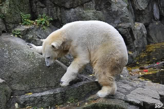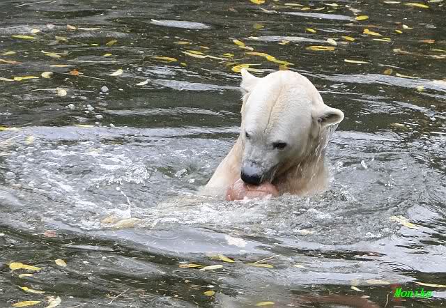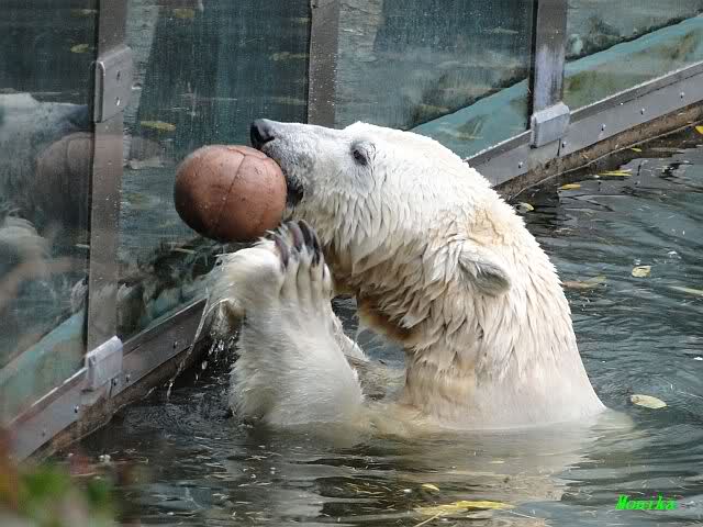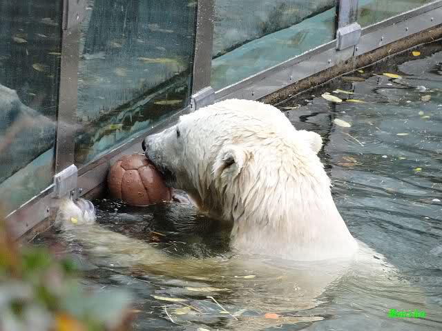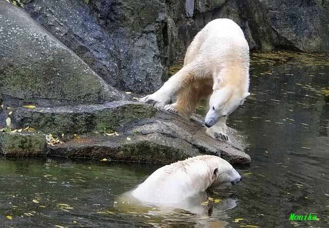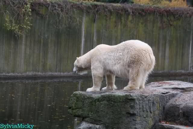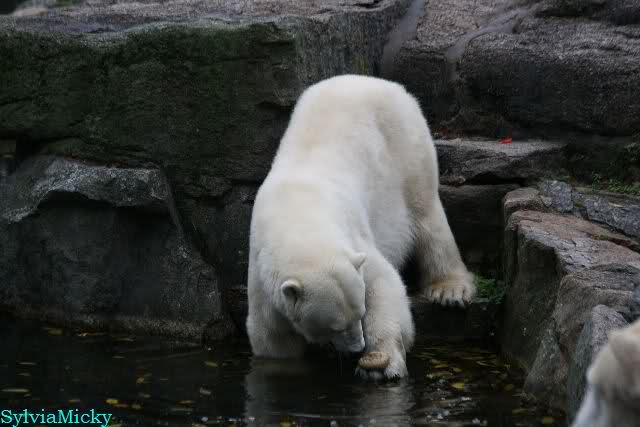 Ja, Knut ist immer wieder für eine Überraschung gut. Als ich um kurz vor 10.00 Uhr am Gehege eintraf, stand eine Dame gabz alleine dort und berichtete, dass Knut um 9.00 Uhr schon im Wasser war und schön spielte.