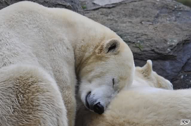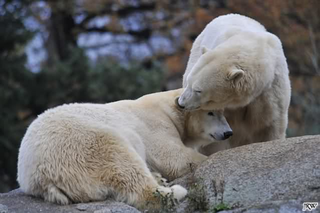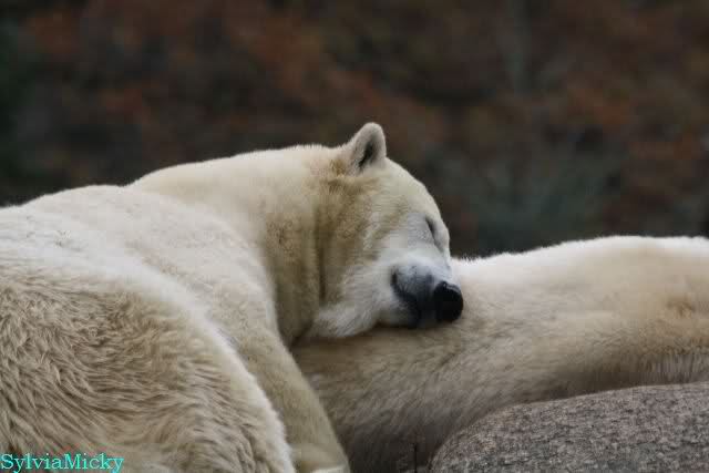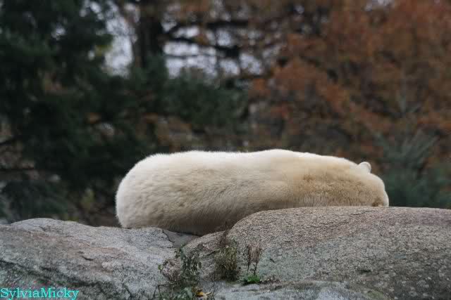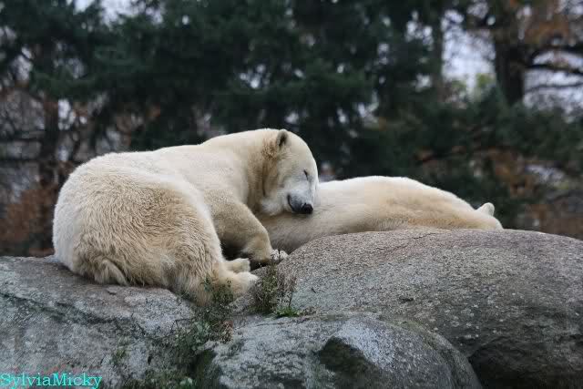 Offensichtlich hat das mehr als reichliche Futter der letzten Tage das Quartett heute müde gemacht. Es gab immer wieder wunderschöne Szenen der Schmusebacken Nancy und Tosca. Kati überlgte mehrere Male ob sie Knut aufsuchen sollte oder nicht. Er hört sie schon von Weitem und macht sofort seine Tapirlippe. Sobald Kati sich umdreht, sieht er wieder unschuldig lieb aus. Eben Knut. Was noch geschah als die Mädels weg waren, kann ich nicht sagen. Unter Umständen hat er dann aufgedreht.