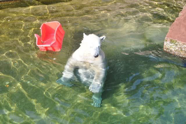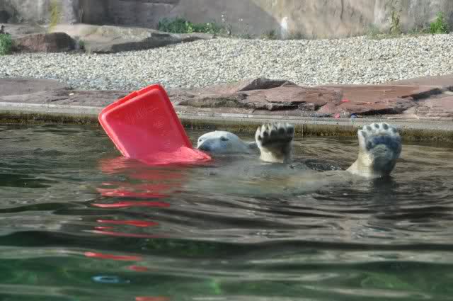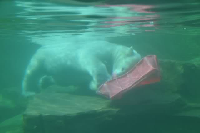 Flocke ist schon satt und beschäftigt sich mit ihrer zurück eroberten Kiste