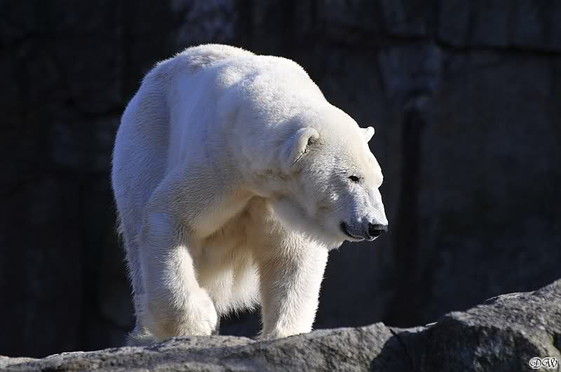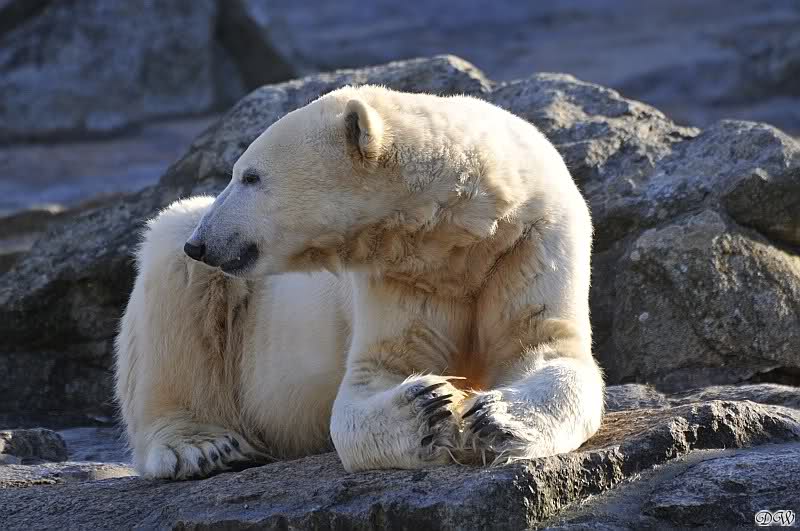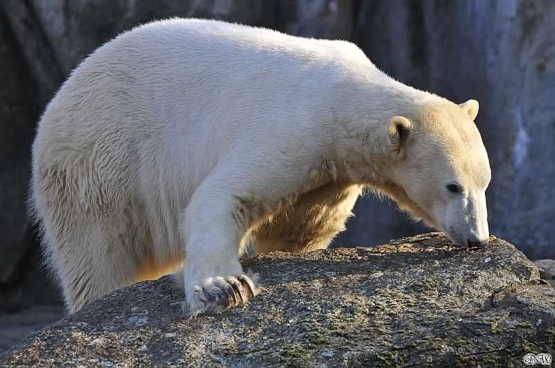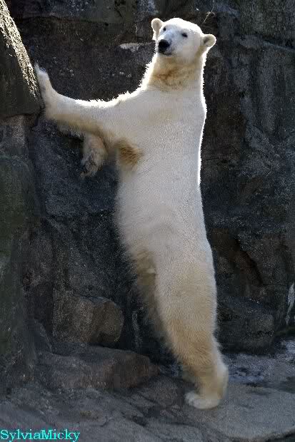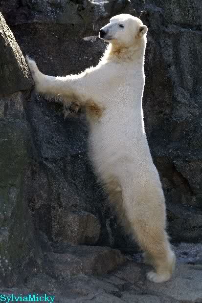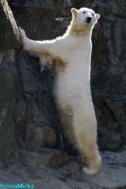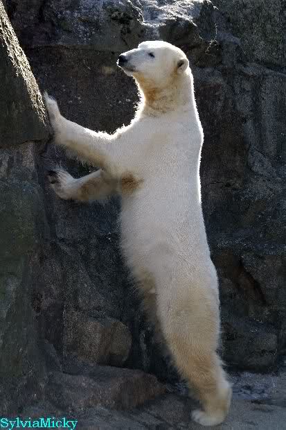 Wenn Knut auf seinem kleinen Felsenplätzchen liegt, wirkt er so klein und hilflos. Aber wenn er sich dann so am Felsen aufrichtet...nun ja, als klein dürfte das nicht mehr bezeichnet werden
