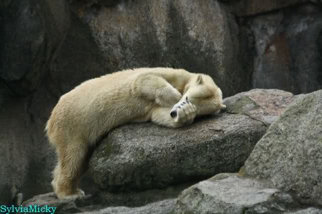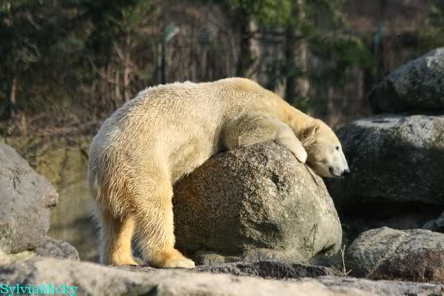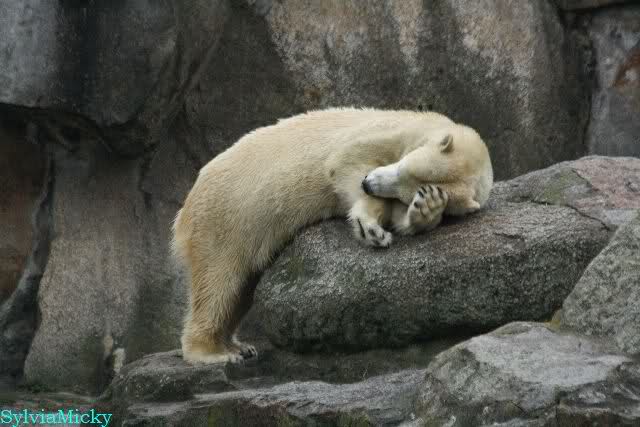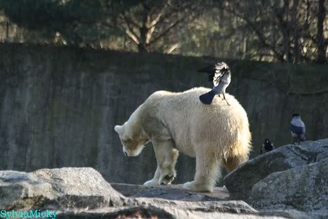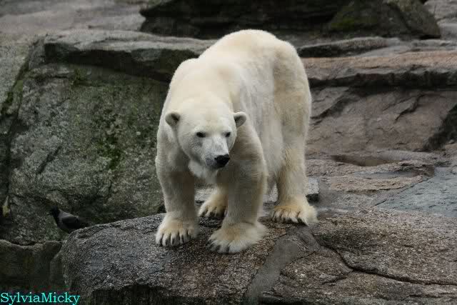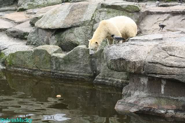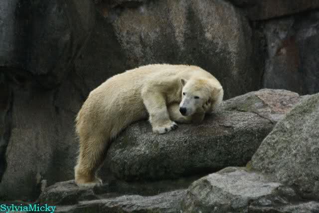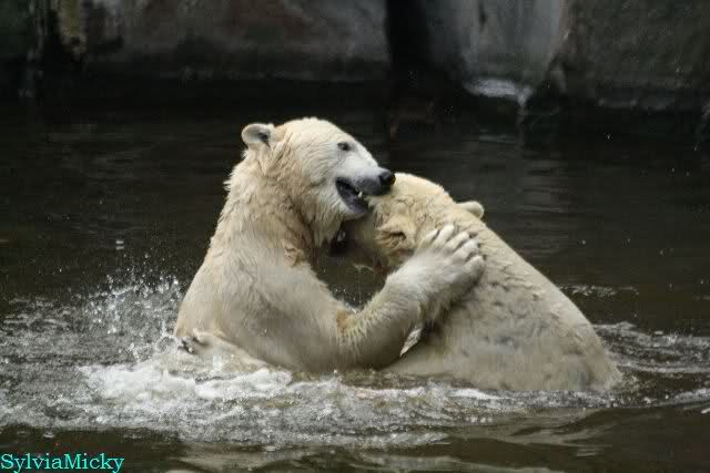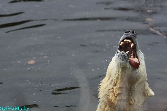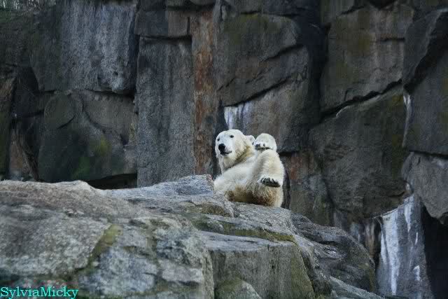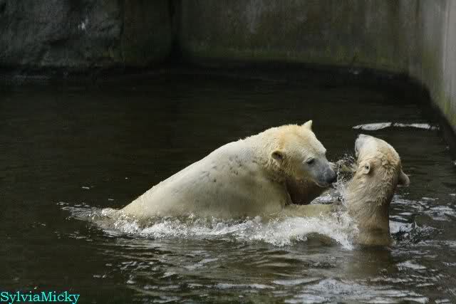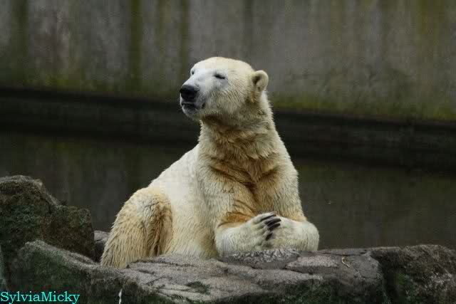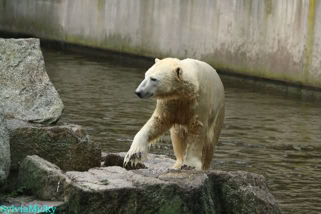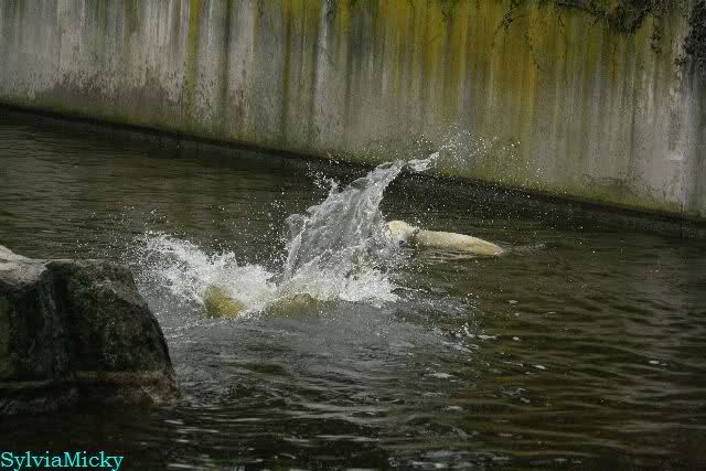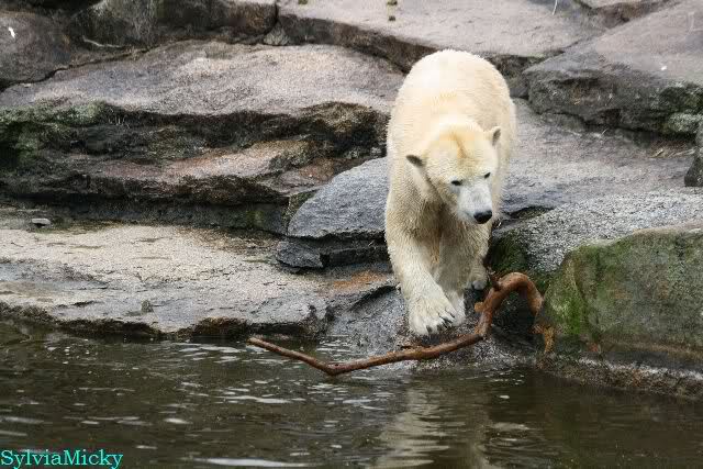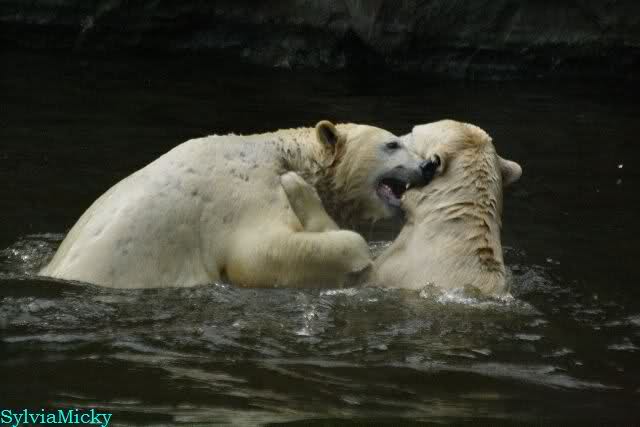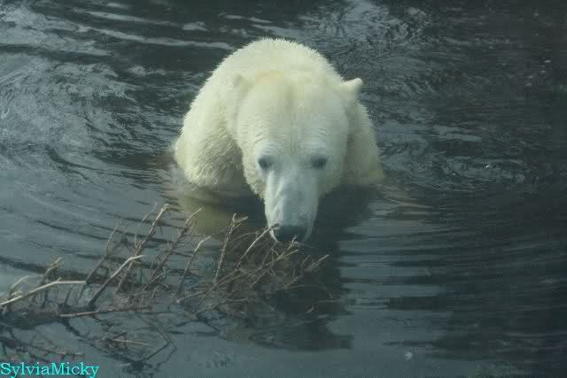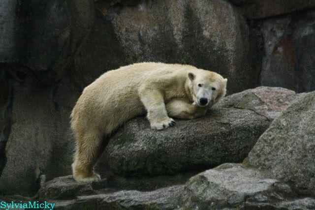 Wunderschöne Bilder, liebe Sylvia, Danke dafür! Es ist immer wieder schön, das man mit so tollen Bildern und Berichten versorgt wird, wenn man selbst nicht in den Zoo kann. Ja, ja, diese Harmonie ist einzig artig. Da hast Du ja mal wieder großes Glück gehabt, Knut und Tosca im Wasser. Gestern, weißt Du noch? Ach, wenn ich daran denke, schlägt mein Herz wieder ganz schön heftig. Diese kleine Dampfwalze, so was von hinterlistig! Schön, das Du gestern noch einmal nach unserm Knut geschaut hast. Als ich noch einmal nach ihm schaute, lag er immer noch in der hintersten Ecke und wusste nicht, wie er sich hinlegen sollte, und wohin mit seinem Kopf, echt traurig. Hätte ich 3 Wünsche frei, würde ich mir für unsere Eisbärchen wünschen "Schöne, weiche Liegemulden" "Eisbär-Beschäftigung" (da gibt es doch diese wunderschönen Kugeln, ein so genanntes Aussidog usw. usw.) und "Baumstämme" zum schubbern und Krallen wetzen!!! Sind das wirklich so außer gewöhnliche Wünsche??? Meinst Du, wenn man möchte, könnte man sie erfüllen? Das wäre schön!!! KNUTE NACHT_KNUT WELT