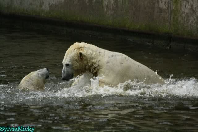 Am Vormittag tobten Knut und Tosca im Wasser. Wie mir erzählt wurde, mußte Tosca sich lange bemühen, ihn ins Wasser zu bekommen.