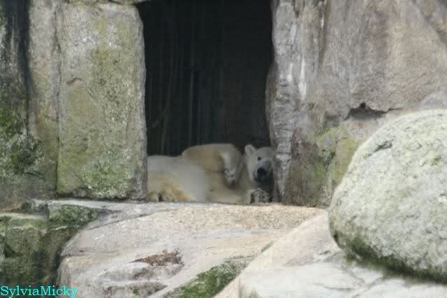 Am frühen Nachmittag lag Knut hinten in der Ecke, Kati in der Höhle und Tosca schlief auf einem Felsen.