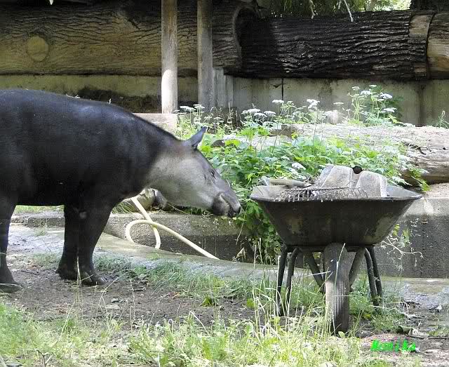 Tapir "Chico" interessierte sich sehr für die Schubkarre.