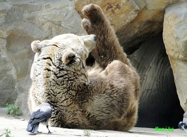 Tagsüber wo ich drin war im Raubtiehaus war Aketi neben Aru und die beiden kleinen waren in der Wurfbox wo sie wahrscheinlich wieder zu gefüttert wurden.Natürlich hat Aketi und die Babys heute was zum Essen bekommen, dass brauch auch die Mutter.Am Abend haben die beiden Kleinen im Stroch geschlafen und Aketi ist rum gelaufen.Sie hat sich auch mal an Ihrem Baumstamm mal gekratzt.