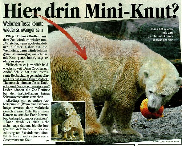 Vielen Dank für die schönen Schwimmbilder. Besonders habe ich mich über den Zeitungsartikel gefreut. Es wäre doch schön, wenn es wieder einen kleinen Eisbären gäbe. In einem Interview vor längerer Zeit hat TD einmal gesagt,er würde das nicht nochmal machen und einen kleinen Eisbären aufziehen; er sei ausgebrannt.
