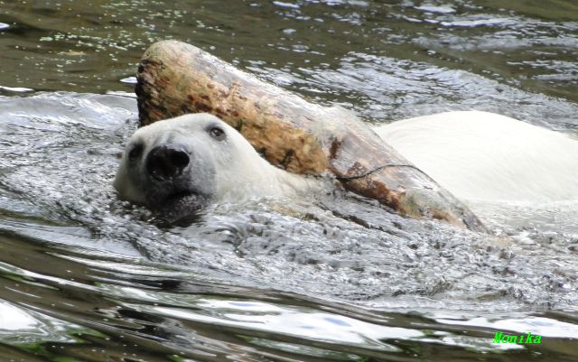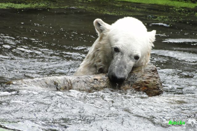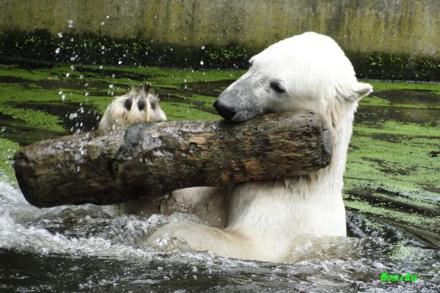 Heute Vormittag verbrachte Knut die meiste Zeit im Wasser und spielte fröhlich mit seinem Brett und dem Baumstamm. Auch der alte Ochsenschwanz kam ans Tageslicht. Gianna lief viel und ging auch mal kurz ins Wasser. Einmal ist sie Knut direkt auf den Kopf gesprungen. Hat ihm aber nichts ausgemacht.