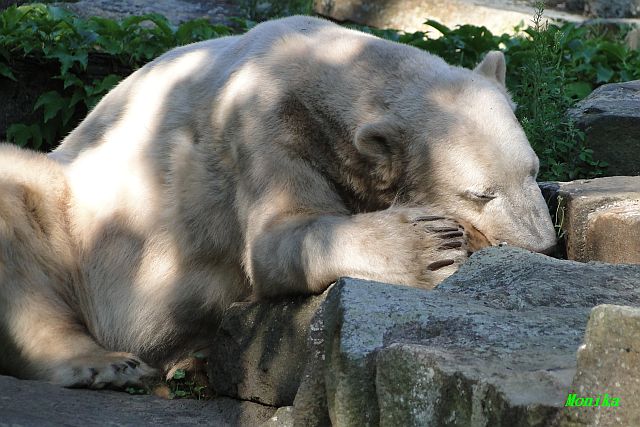 Den heutigen Vormittag könnte man so beschreiben, Knut schlief und Gianna lief und lief. Knut ging kurz ins Wasser, sie hatte aber keine Lust dazu. Später färbte er sich wieder ein und schlief weiter.