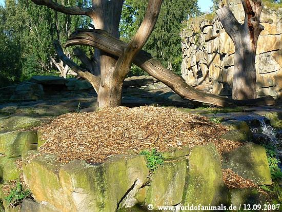 Er lag nicht in seinem schönen *Mulch-Bett*, sondern genau auf der anderen Seite der Anlage, lag auf dem nackten Felsen und schlief irgendwann ein.