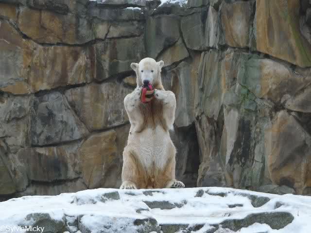 Knut is just a young jolly bear, who loves to play and is also luckily able to keep himself busy. Why does nobody say the same about Flocke or Wilbär, when they are funny or paying attention to their audience. And throwing toys to humans is not such an exception either. I have already read articles and seen pictures of other polar bears in other zoos that are doing the same, sometimes there is even a warning to watch out for polar bears throwing things over their fences.