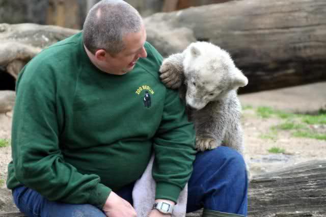 Auch heute wieder sind die Bilder und Texte ein Augenschmaus. Der "Baby-Maskenbildner" sieht so nach Plüschbär aus, dass ich nur staunen kann. Ich hatte gar nicht in Erinnerung, dass Knut damals schon gerne bi-color-mäßig unterwegs gewesen ist.