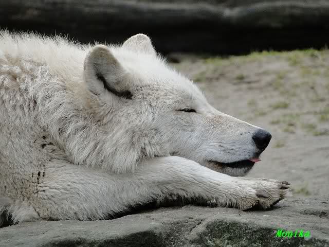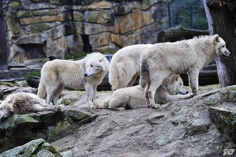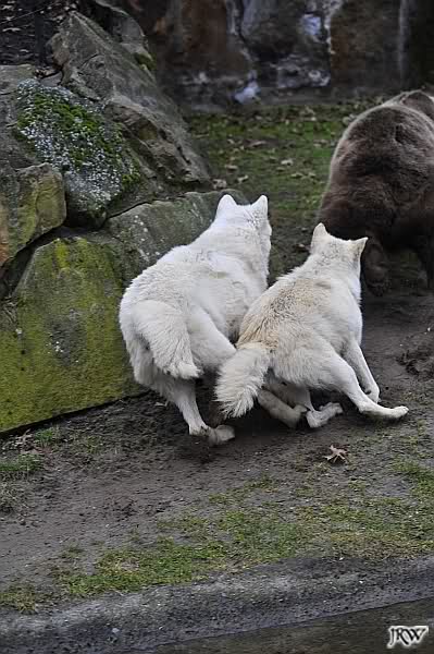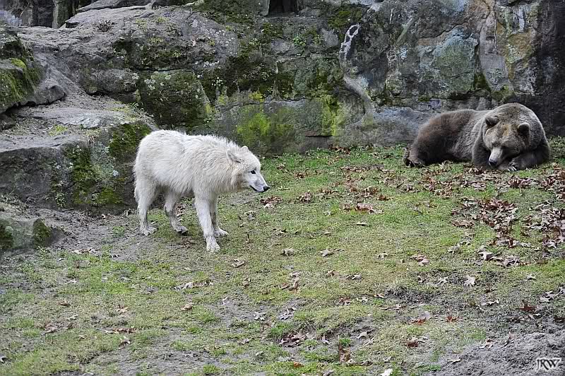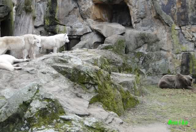 Die Wölfe waren auf ihrer Anlage ohne die Möglichkeit zu haben den Bären zu können. Von den Wölfen sah ich nur drei.