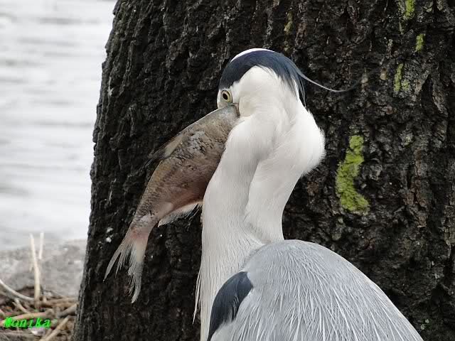 Der Fischreiher hatte mit dem großen Fisch ganz schön zu kämpfen.
