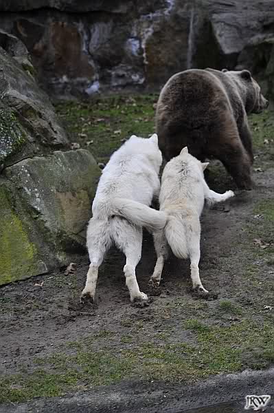 Das ist der nächste "Tierversuch!" Es ist unglaublich, wie man die schon älteren Bären mit dieser Wolfsmeute zusammen lässt. Das da irgendwann etwas passiert, ist doch vorprogrammiert.