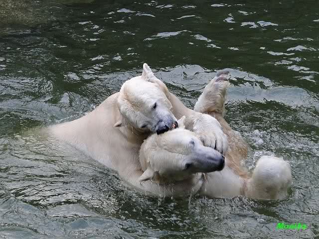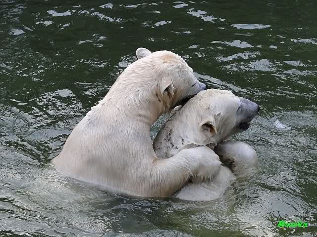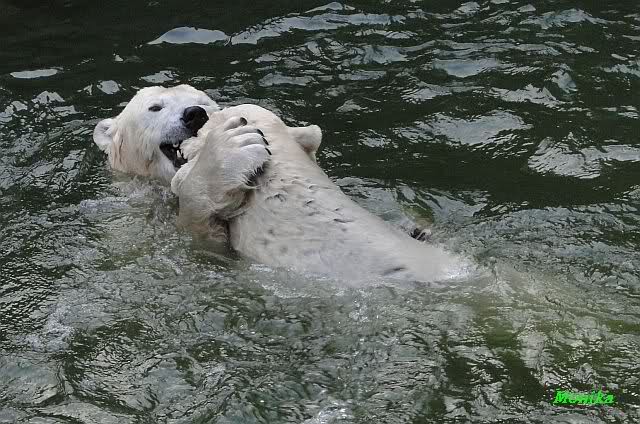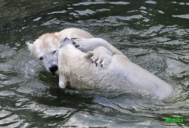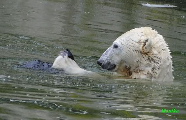Knut paddelte wieder wie ein Wilder um Tosca zu locken. Er hatte aber keinen Erfolg. Sie schmuste mit Nancy.