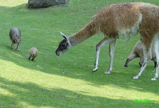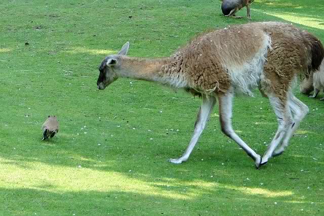 und trauen sich selbst erst hinein als der Guanako näher kommt.