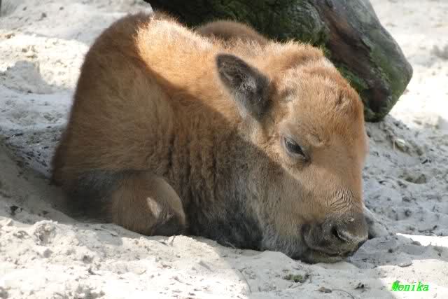 Das kleine Bisonkalb lag heute weit weg von seiner Mutter.