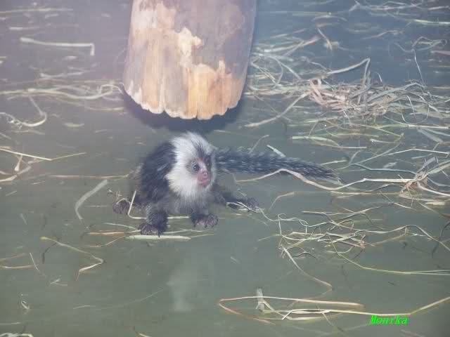 Das kleine Äffchen hat 2 Babys, die 4 Wochen alt sind. Auf dem Bild sieht man das eine kleine an der linken Schulter. Das zweite saß auf einen Stamm und plumpste auf die Erde. Dort saß es dann eine ganze Weile verschreckt, bis es den Weg zurück fand. Sie sind sooo süß.