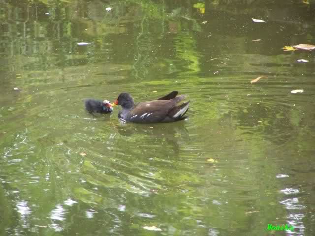 Blesshuhn mit Nachwuchs auf der Löwenanlage.