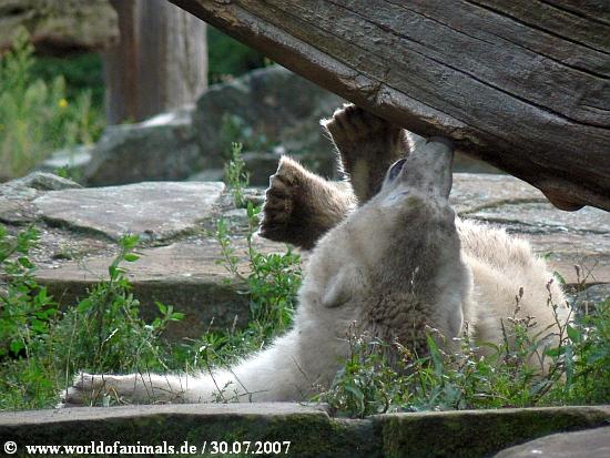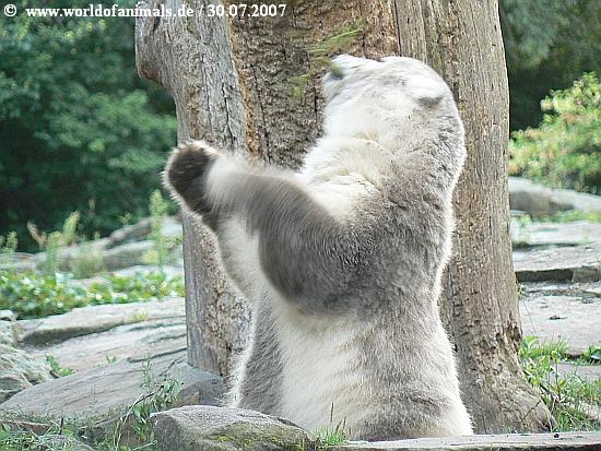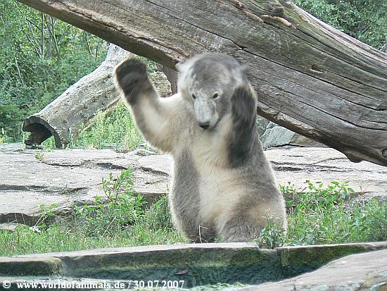 Vielen Dank fuer die schoenen Bilder von gestern. Ich kann mir durchaus vorstellen, dass der kleine Knut so lange rumgetanzt hat, bis er umfiel! Der ist nach wie vor knuddelig und suess! Wuerde ihn gern mal im Zoo selber sehen, aber bis dahin wird er schon erwachsen sein.