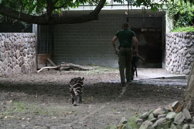 Als ein Pfleger die Anlage von Ronja und Maja reinigte, lief Maja dem Pfleger immer hinterher