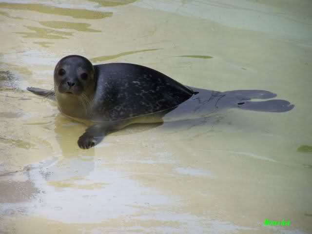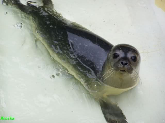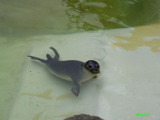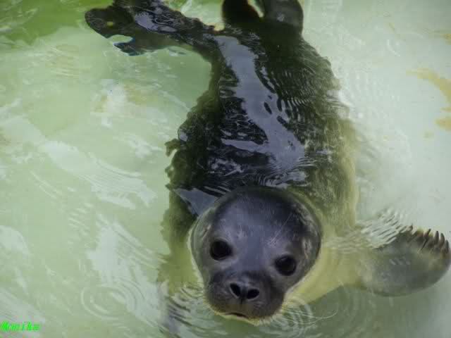 Yeo hat ja in ihrem Zoobericht schon von dem kleinen Seehundmädchen "Mandy" gesprochen, die im Juli 2009 geboren wurde. Hier ist sie. Ich kann Yeo verstehen, die kleine ist wirklich sehr niedlich mit ihren großen Knopfaugen. Wir haben heute bemerkt, dass sie auf ihren Namen hört. Als wir sie gerufen haben, kam sie angeschwommen und guckte uns mit ihren Kulleraugen an. Einfach nur süüüß.