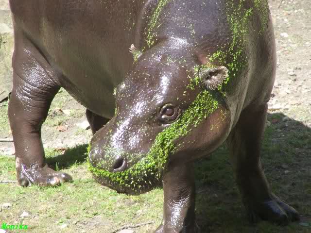 Das Zwergflußpferd hatte heute auch einen grünen Bart. Hat es sich wohl bei Knut abgeguckt.