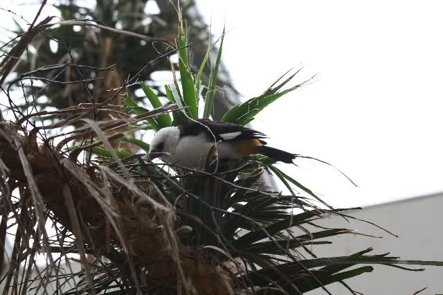 Der kleine Storch. Die Mutter legte Blätter um ihn herum. Mir kam es vor, als wenn sie ein Nest bauen würde. Das alte Nest hat, nach Aussagen eines Pflegers, ein Andenkondor zerstört.