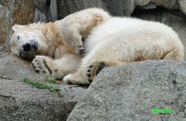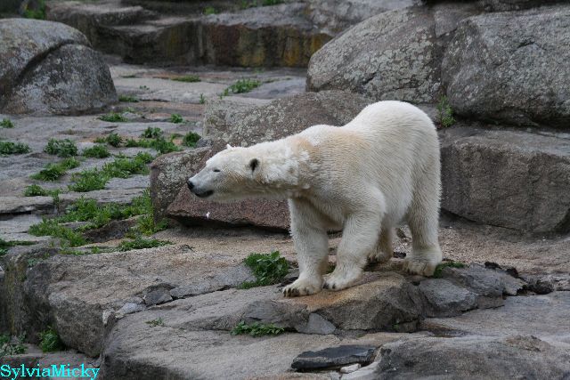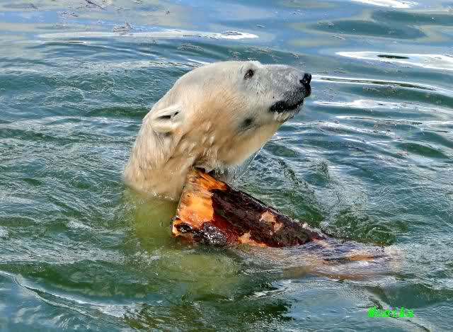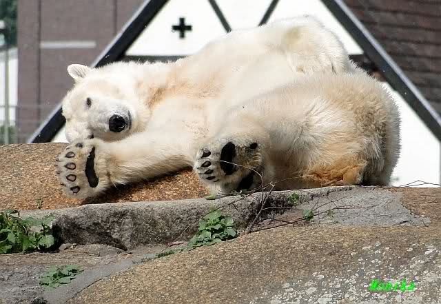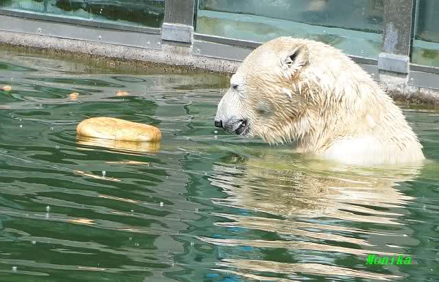 die extra für Zootiere konzipierten Spielzeuge von Knut lagern noch irgendwo hinter den Kulissen. Könnt Ihr Euch vorstellen, wieviel Spaß die Drei mit den Kugeln, dem Nackthuhn oder dem Spielzeug von Lars hätten? Oder mit einem Schubberbaum und etwas Naturboden auf dem sie sich wälzen könnten? Von ganzem Herzen wünsche ich mir, dass alle drei Eisbärinnen das noch erleben dürfen. Sie sind nicht mehr die Jüngsten.