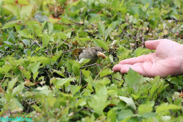 Dieser kleine Spatz hat auch Hunger. Aber er weiß ganz genau, die *Knut*-Feunde haben auch ein Herz für kleine Spatzen.