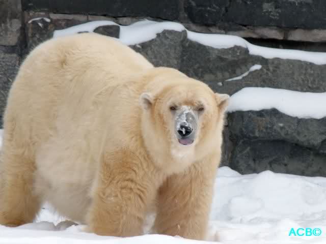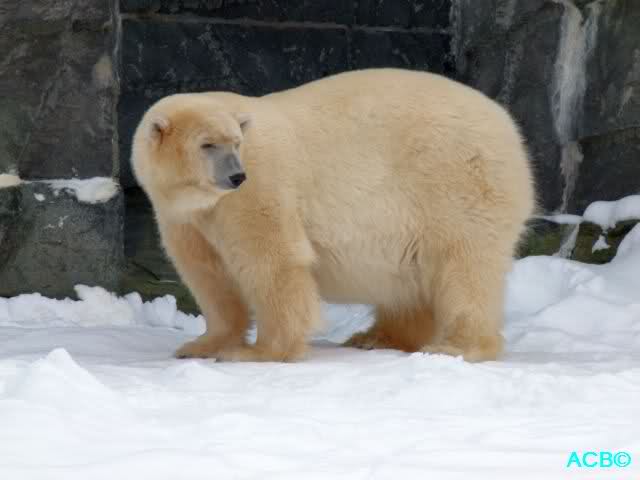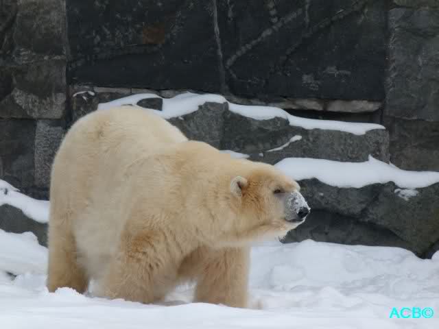 Im Tierpark ist es zZ. wunderschön. Die Eisbären Troll und Aika hätten allerdings mit etwas Beschäftigungsmaterial mehr Abwechslung. So lief Troll unentwegthin und her, während Aika in einer Schneekuhle lag und schlief.
