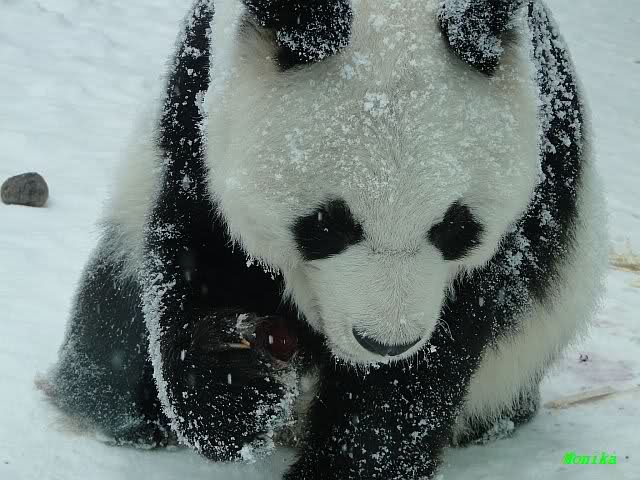 Bao Bao schmeckt`s auch bei Minus-Graden und Schnee.