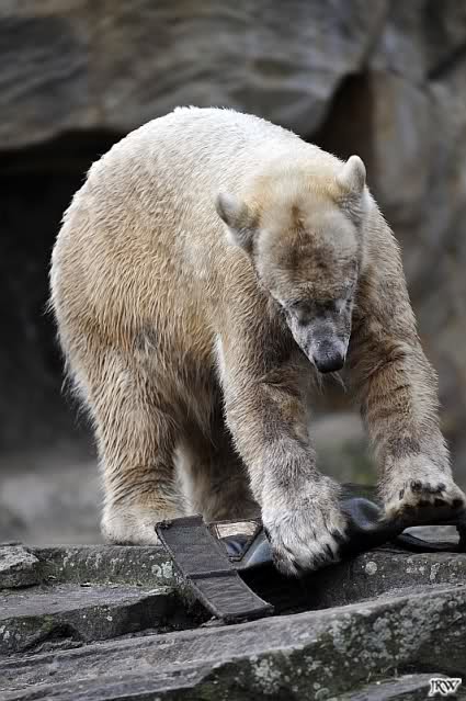 Obwohl von Herrn Henkel aufgefordert stand Knut nicht auf und das war für mich der beste Beweis, daß Knut kein Zirkusbär ist, wie von einigen behauptet. Er macht was er will und wann er will.