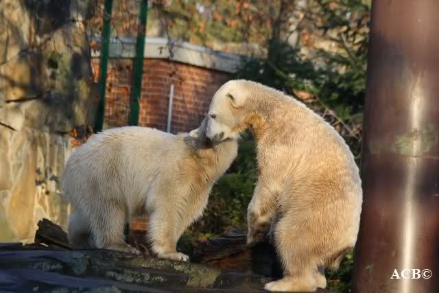 Als ich um halb fünf den Zoo verließ, lagen Knut und Gianna friedlich auf der Anlage, allerdings in ziemlichem Abstand. Das schien aber für beide in Ordnung zu sein.