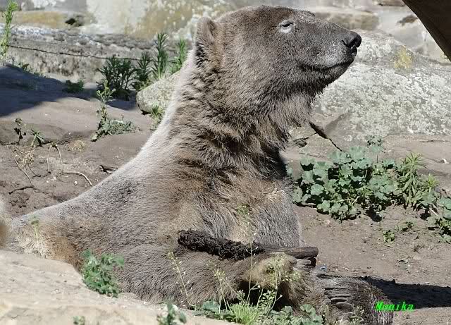Monika, sie ist nicht mehr so panisch. Sie blieb auch öfters stehen, schaute den Lippenbären zu und schwamm auch länger im Wasser. Leider ist dies auf Fotos schwer zu sehen. Video ist besser.