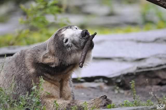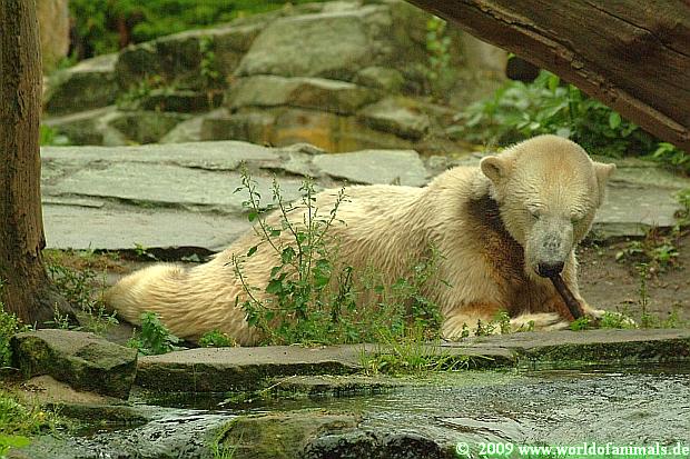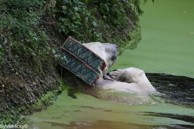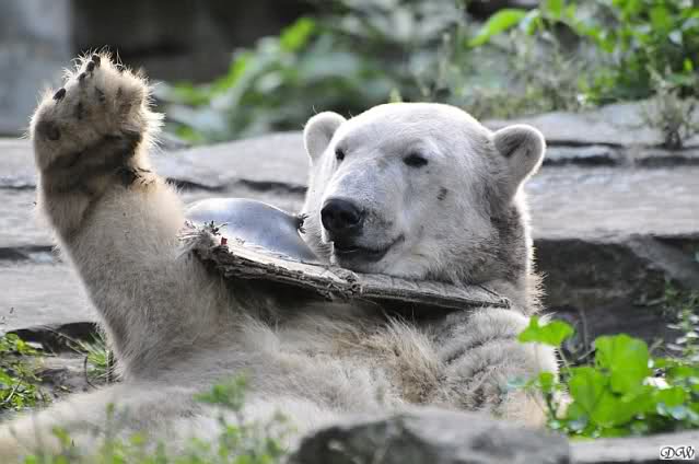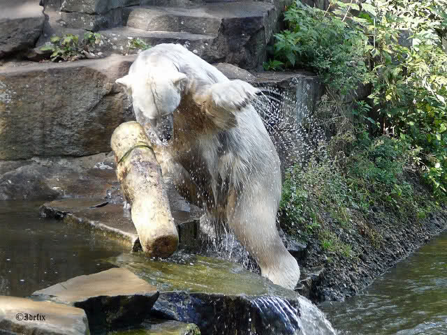 Gerade habe ich gelesen und gesehen, dass Knut wieder mit seinem Holzstamm spielt. Am Sa. dachte ich, er schaut das Ding nie wieder an.